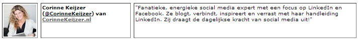 “De Engaging Woman Of The Year is een ondernemer, zzp’er of manager die social media doelgericht en succesvol weet in te zetten. Haar social influence is hierbij een factor.”