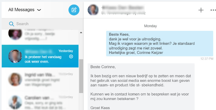Soms kun je met weinig moeite al zóveel bereiken. Door een berichtje te liken bijvoorbeeld. Of een berichtje te sturen aan iemand die je een uitnodiging stuurt om te linken zonder persoonlijk bericht. “Ja, maar hallo… linken met onbekenden dat doe ik sowieso niet hoor. Krijg ik van die uitnodigingen van mensen die ik niet ken, wat moet ik daar nou mee. ” Lees nog even verder zou ik zeggen….