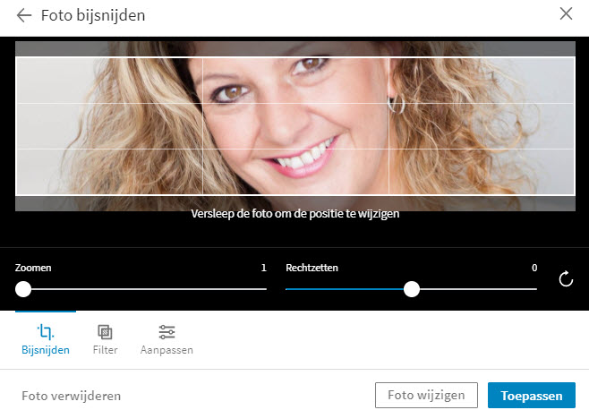 Er is al veel over de profielfoto geschreven maar nog niet heel veel over de achtergrondfoto. Misschien dat deze laatste om die reden dan ook nog vaak ontbreekt op profielen. Jammer, want het is een uitstekende gelegenheid om je profiel wat meer smoel te geven qua personal branding. Nieuw is dat je de achtergrondfoto kunt bewerken. Inzoomen, bijsnijden, contrast en helderheid bewerken, filters er overheen plaatsen, je kunt helemaal los gaan. Geen excuus meer dus en plaatsen die foto!
